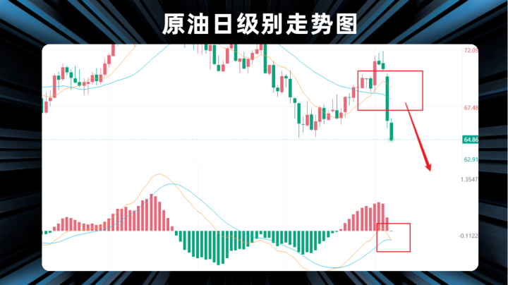 从 MACD 指标来看,当前原油市场的走向也十分清晰。红色动能柱已经大幅萎缩至底部,同时,水下死叉形态即将形成。在技术分析中,若死叉在零轴上方出现,有可能是市场洗盘,行情后续仍存在上涨可能。但目前死叉即将在零轴下方形成,这意味着市场空头氛围浓厚,原油上涨的可能性微乎其微。