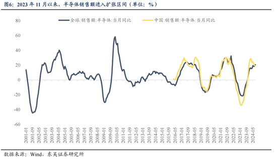 短期而言,半导体仍处于景气区间。半导体已进入“主动补库”阶段。近20年规律来看,半导体周期3-5年一轮,2023年11月全球半导体销售额同比转正、同时自去年下半年至今头部圆晶厂产能利用率明显提升,这都意味着半导体需求有望持续扩张。