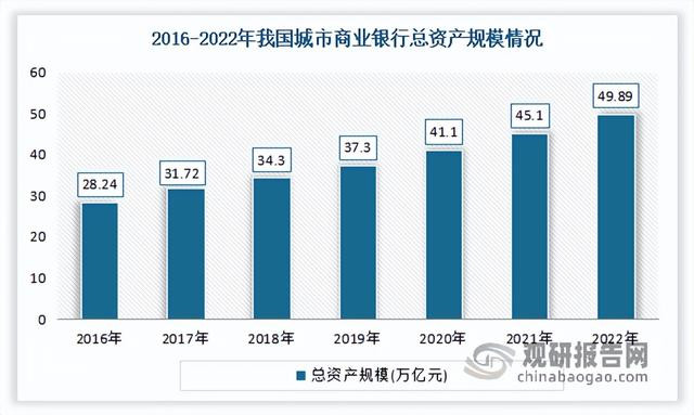 经过十余年的沉淀发展,目前我国城商行已经形成了深耕区域经济的差异化发展特色,资产规模及各项业务进入平稳发展期,增速呈现波动上升,其资产总额占城市商业银行资产规模的比重保持在15.5%左右。数据显示,截至2022年我国城商行资产总额已达49.89万亿元,占商业银行资产规模的15.60%。
