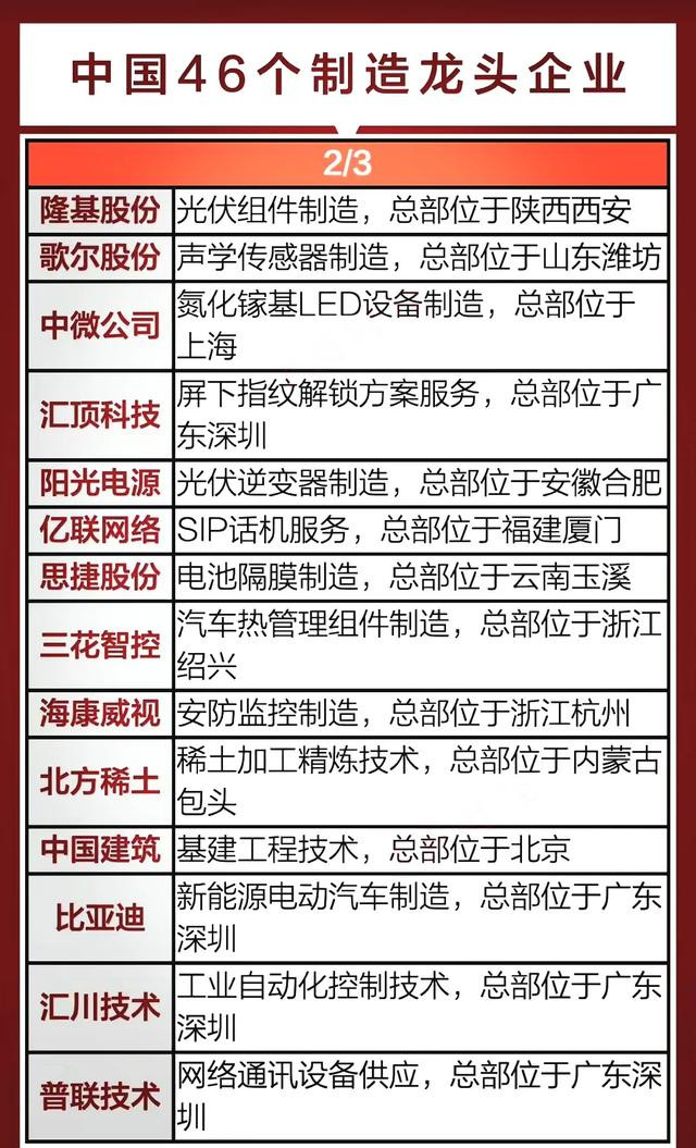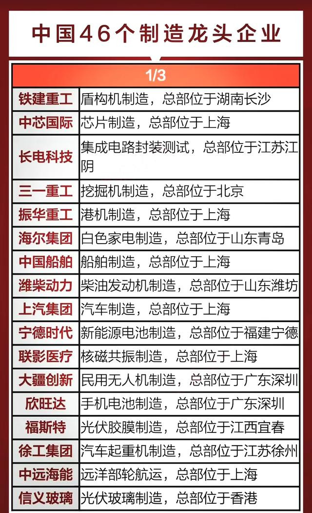 不一一介绍了,50大顶级公司名单和46家制造龙头企业名单都放在下面了,谢谢阅读。资料取材网络,仅供参考哈!